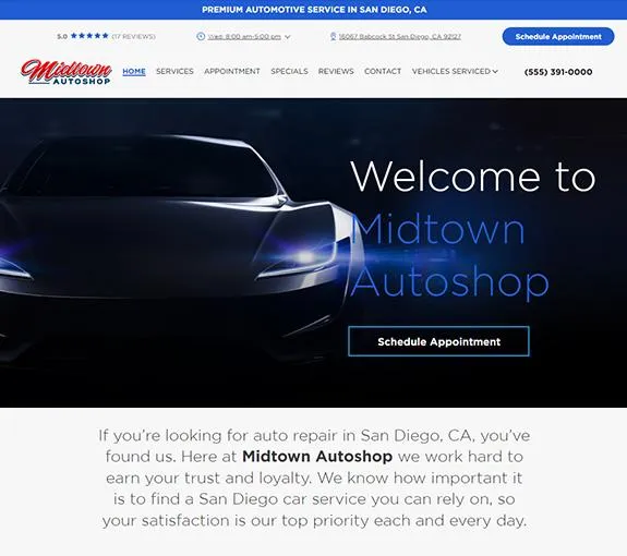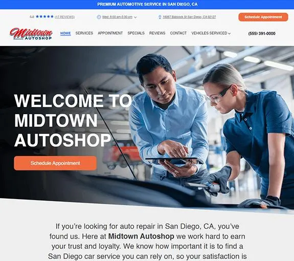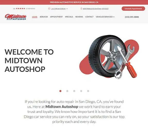 You do not have to learn how to code, program, or type up content. When you add Local Search to your Mitchell1 subscription we handle everything from there. You will pick the layout you want, shop colors, send us a few images (if you want) and then we do the rest.